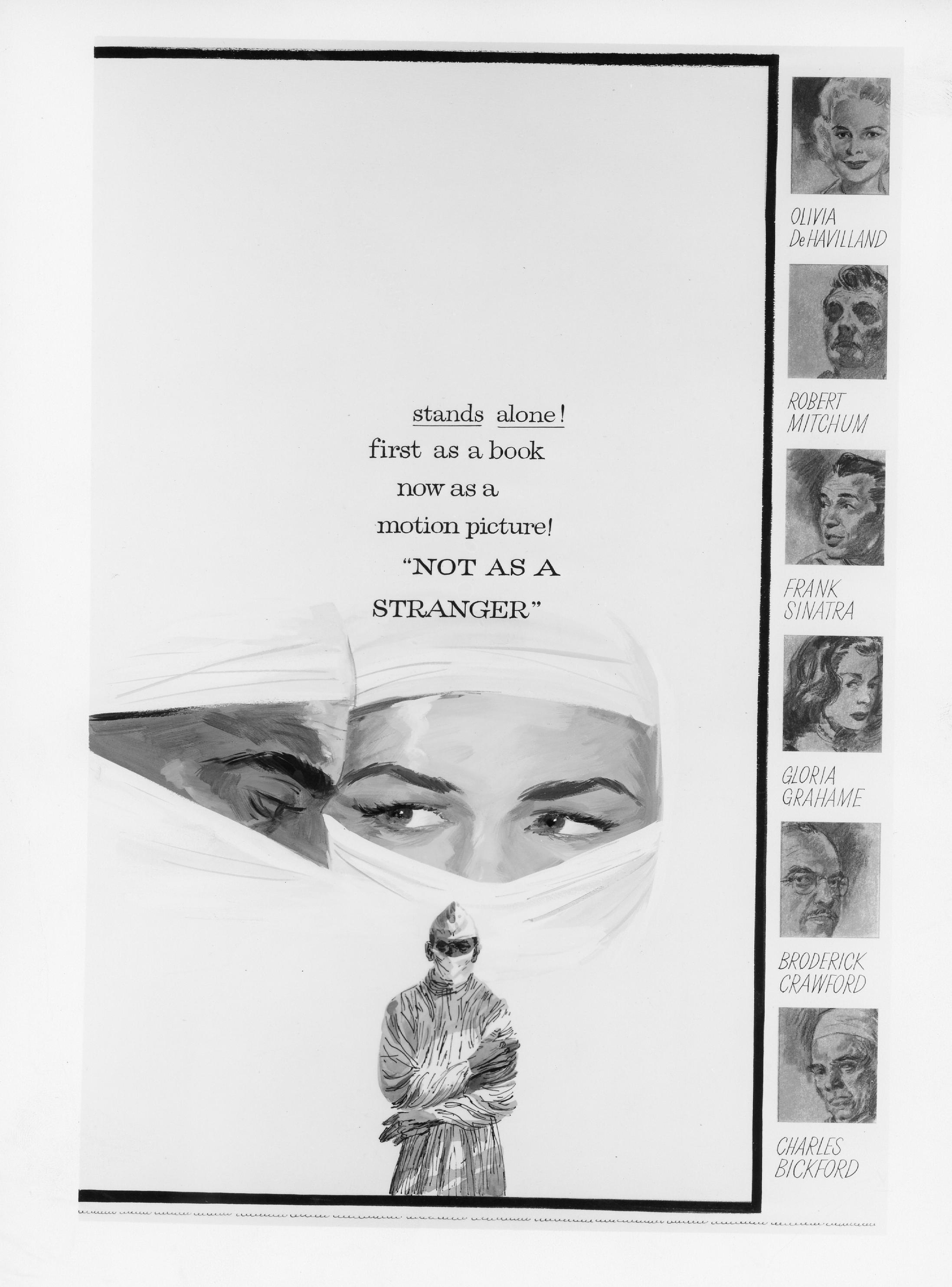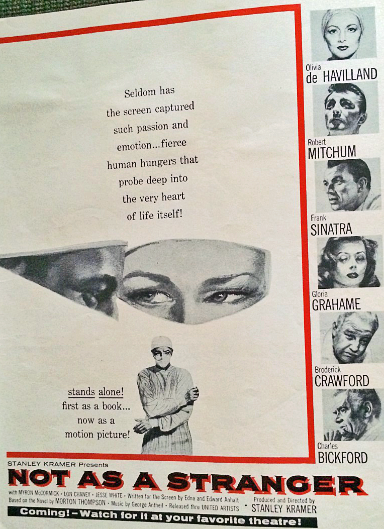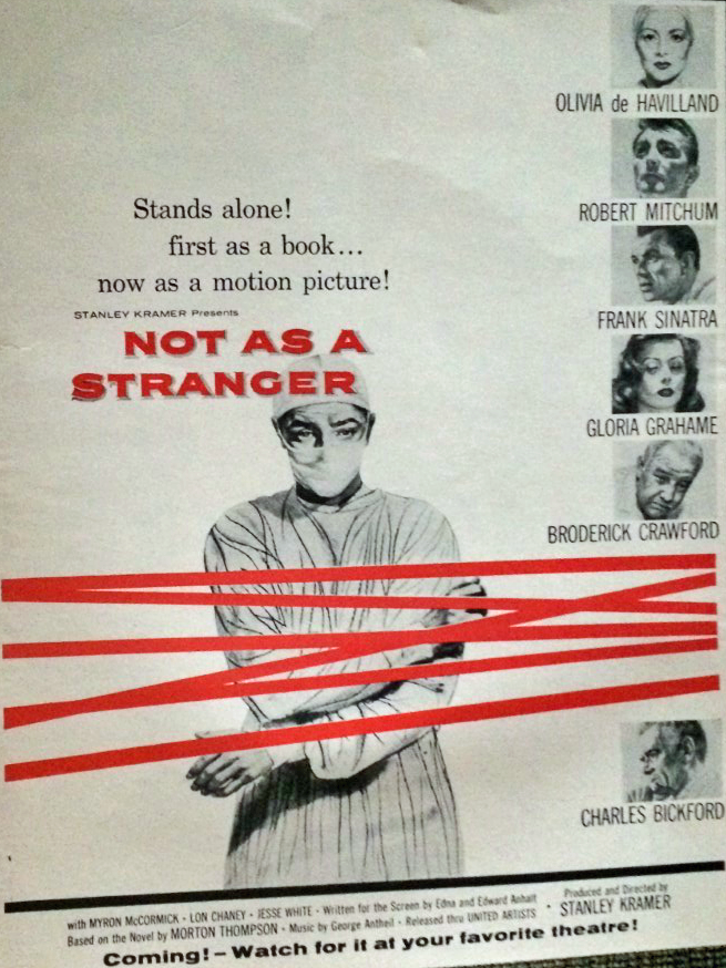 Here’s the “Not as a Stranger” pressbook page that talks about these two ads specifically, and how widely they were being distributed: