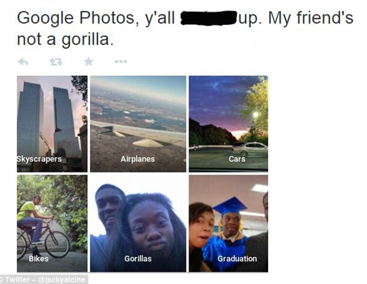 “Jacky Alcine, a Web developer who is black, took to Twitter to say Google’s Photo app, released in May, labeled a picture of him and a friend as ‘gorillas,'” the story reports. “The label showed up in a feature that automatically categorizes photos, like cars or beaches, so they are more easily searchable.”