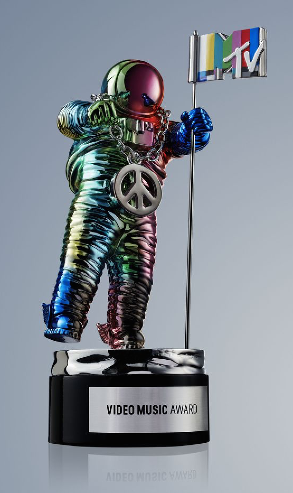 “From the distinct color of the TV color bars to the peace sign necklace to Jeremy’s signature sneakers, the redesign of statue is part of MTV’s long-standing history of bridging the gap between the world of fashion and music,” MTV said in its announcement unveiling the design. “Those who win an award will get to take home one of these special Moonmen, designed exclusively for this year’s show.”