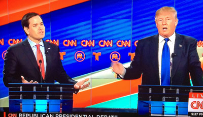 Sen. Marco Rubio, left, and Donald Trump Get Into It During the Republican Candidate Debate on Thursday night, Feb. 25th