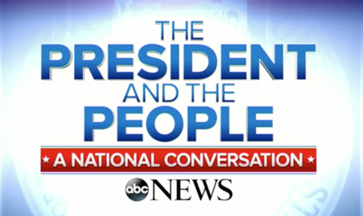 “The President and the People: A National Conversation” will air commercial-free July 14, 8-9 p.m. ET, on ABC, ESPN, Freeform, ABC News Digital, Freeform Digital, Watch ABC, WatchESPN, Yahoo, ABC News’ Facebook page and YouTube channel and ABC Radio.