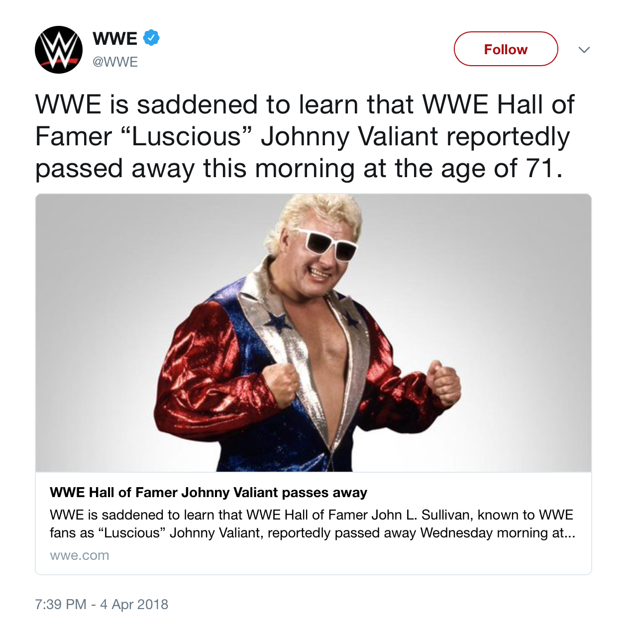 The WWE tweeted a message acknowledging Sullivan’s death, which you can see below.