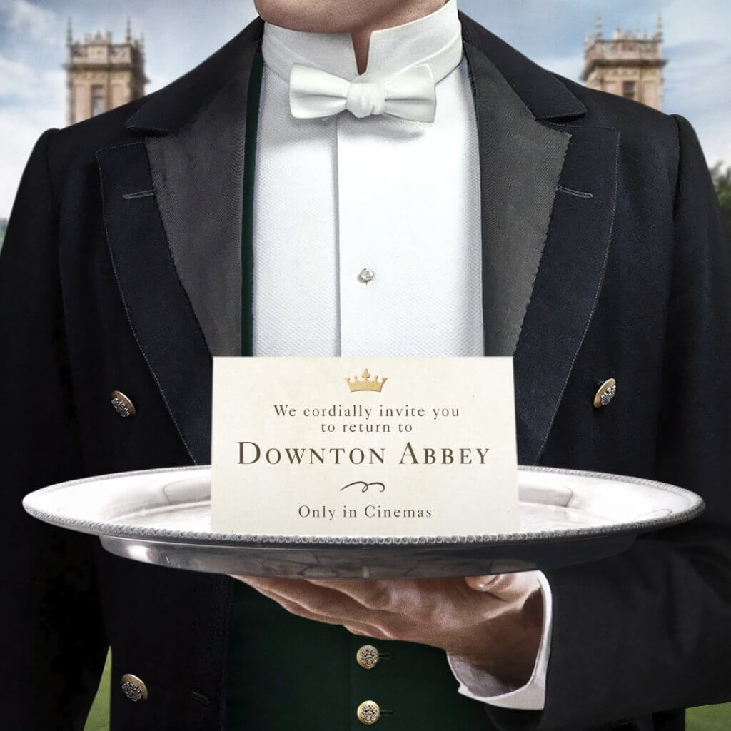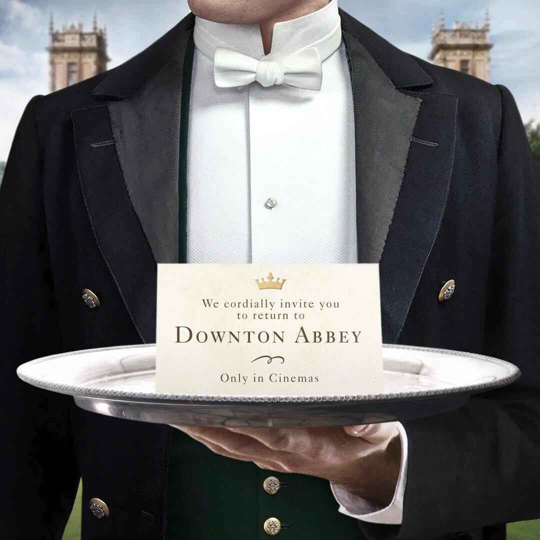 Early this morning the official “Downton Abbey” Twitter account sent out a photo of a butler holding a silver platter with a card reading: “We cordially invite you to return to Downton Abbey — Only in Cinemas.”
