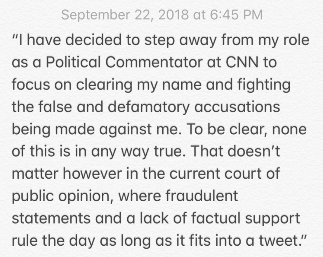 “I have decided to step away from my role as a Political Commentator at CNN to focus on clearing my name and fighting the false and defamatory accusations being made against me,” Miller said in his tweet, which you can see below. Miller strongly denies the allegations.