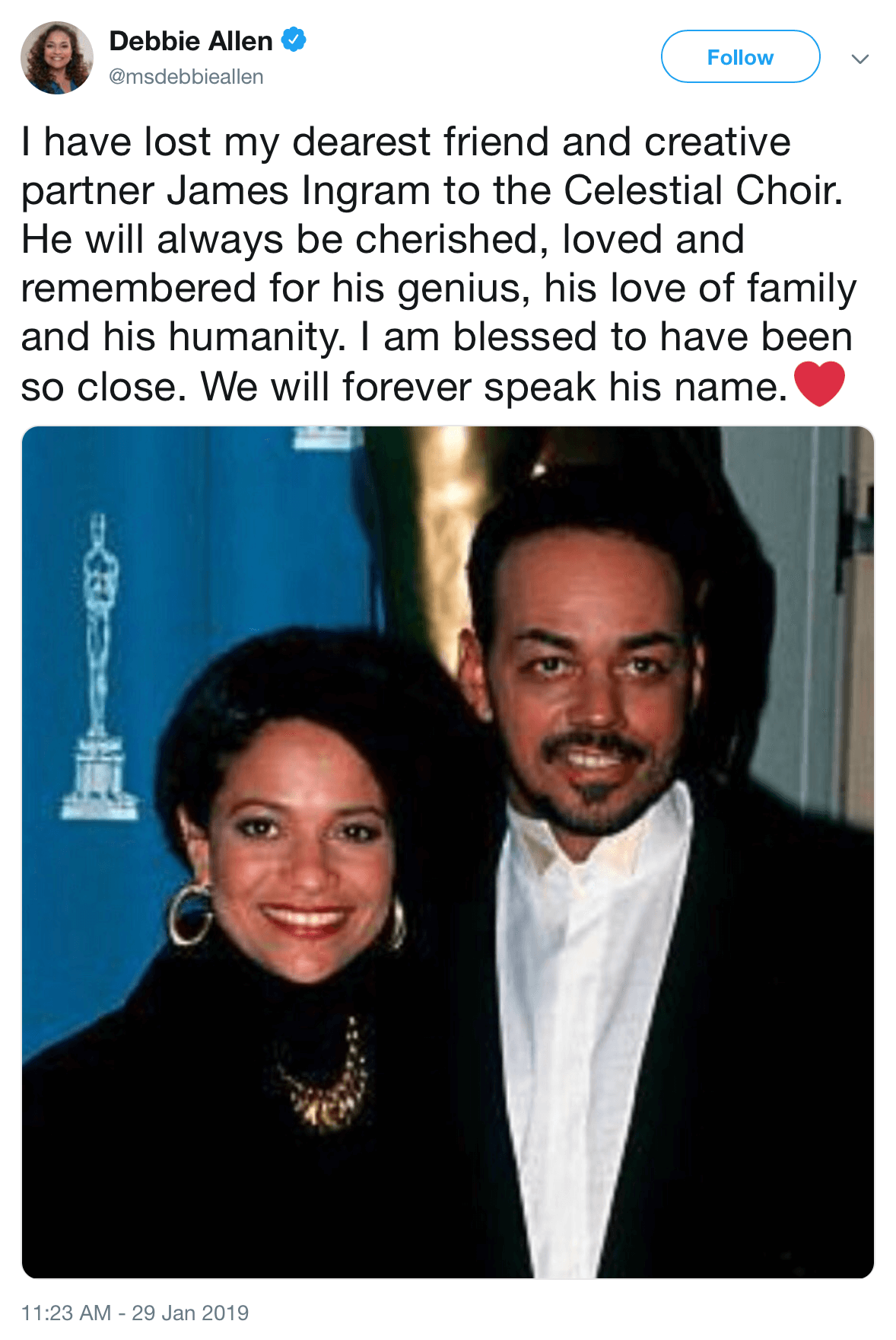 Choreographer and actress Debbie Allen, another collaborator and also a friend of Ingram’s, posted her reaction to his death on her Twitter page, which you can see below …