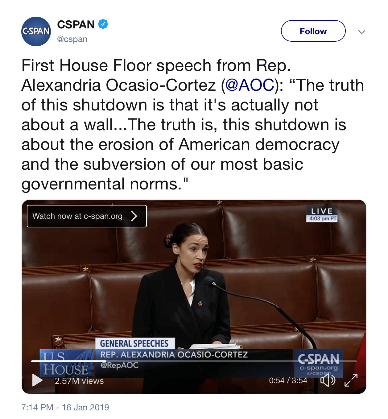 C-SPAN also quoted part of the speech in its tweet, which you can see below …