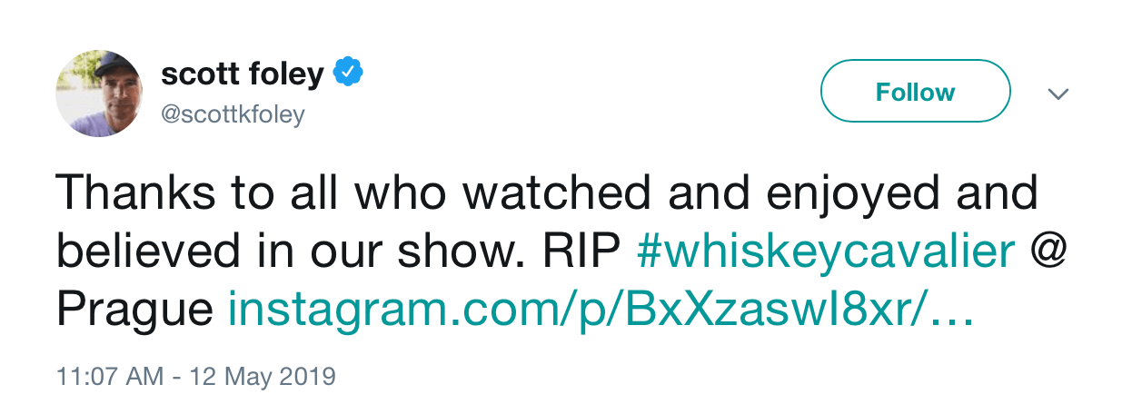 Foley and others involved with the show responded to news of the show’s cancellation on Twitter. You can see Foley’s tweet below.