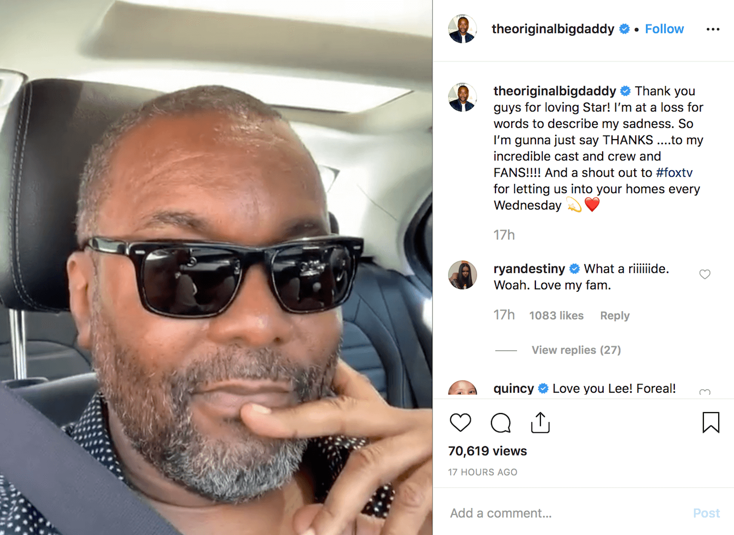 Lee Daniels broke the news about the former Fox drama “Star” on his Instagram account. You can see his post below and click here to watch the video on Instagram.