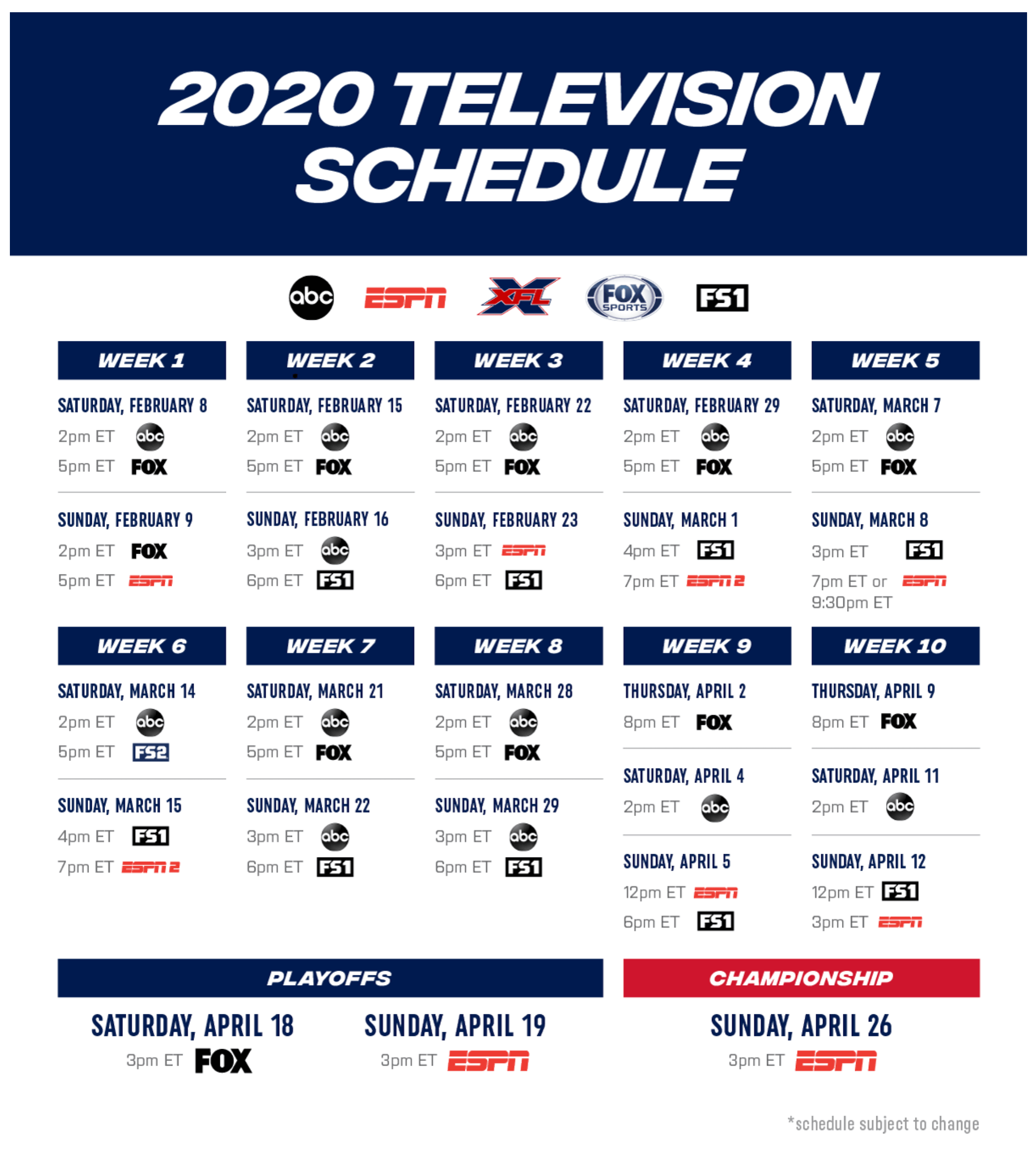 Below is the 2020 XFL television schedule, released today. You can click on the graphic to see a larger version.