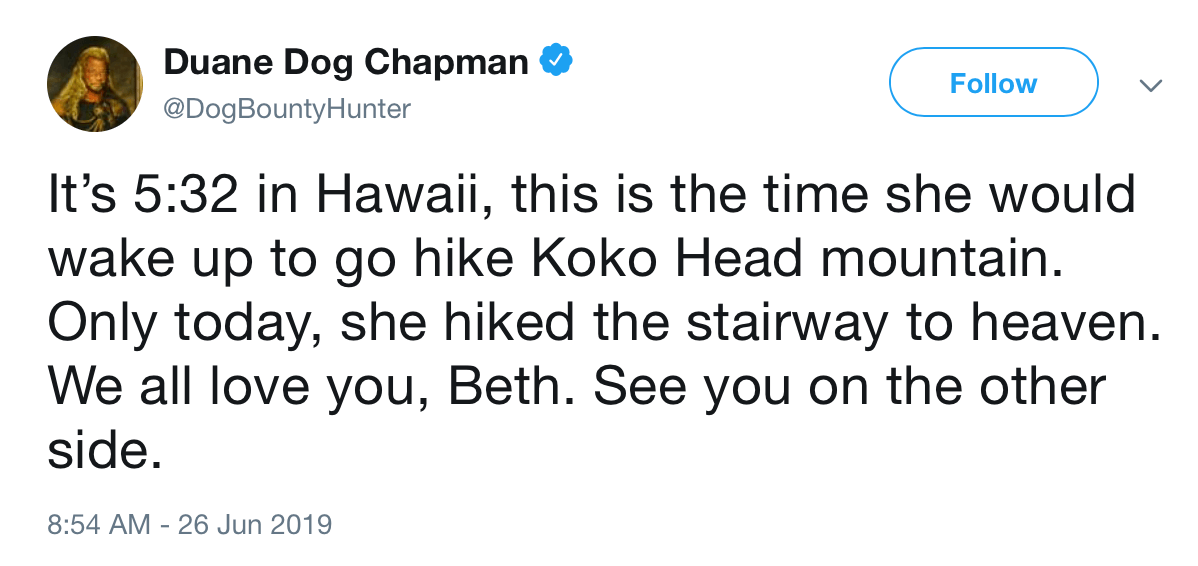 Duane Chapman posted a message on Twitter after the death of his wife, which you can see below.