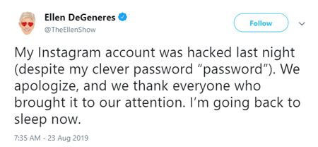 Ellen DeGeneres Says Her Instagram Account Was Hacked Last Night ‘Despite My Clever Password ‘Password.’ What Her Followers Saw in the Hacked Account