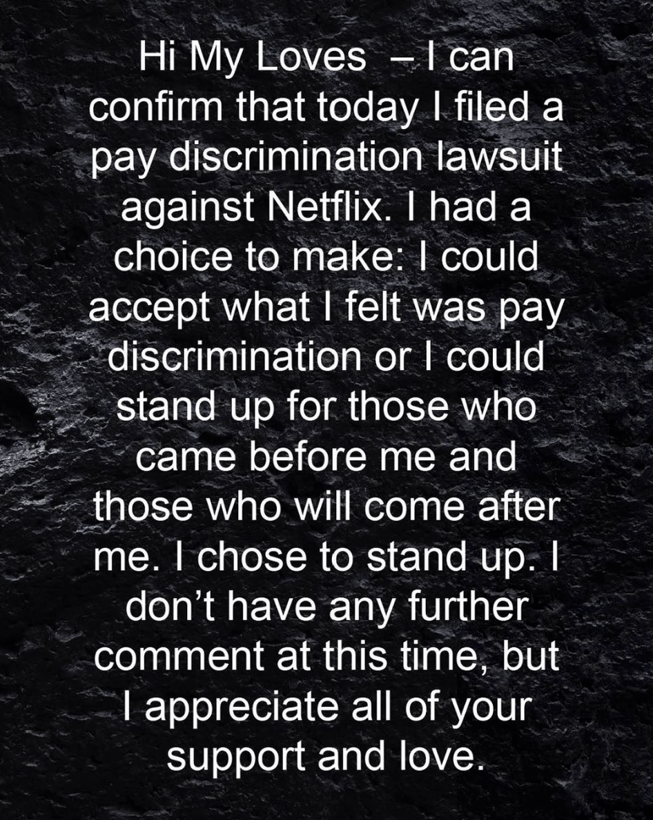 Mo’Nique commented on the lawsuit on her Instagram account, writing: “I had a choice to make: I could accept what I felt was pay discrimination or I could stand up for those who came before me and those who will come after me. I chose to stand up.”