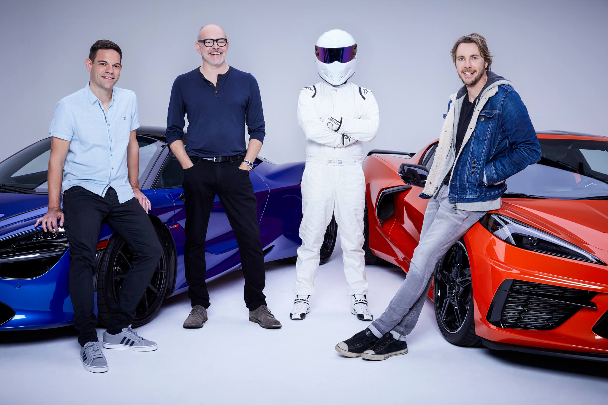 L-R: Jethro Bovingdon, Rob Corddry, The Stig, Dax Shepard (MotorTrend)